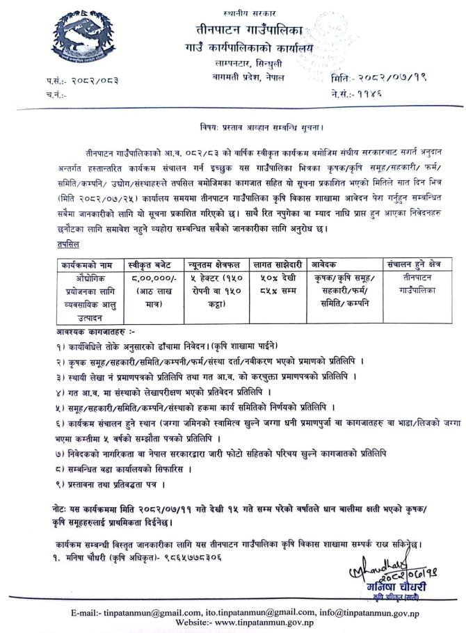 प्रस्ताव आह्वान सम्बन्धी सूचना।