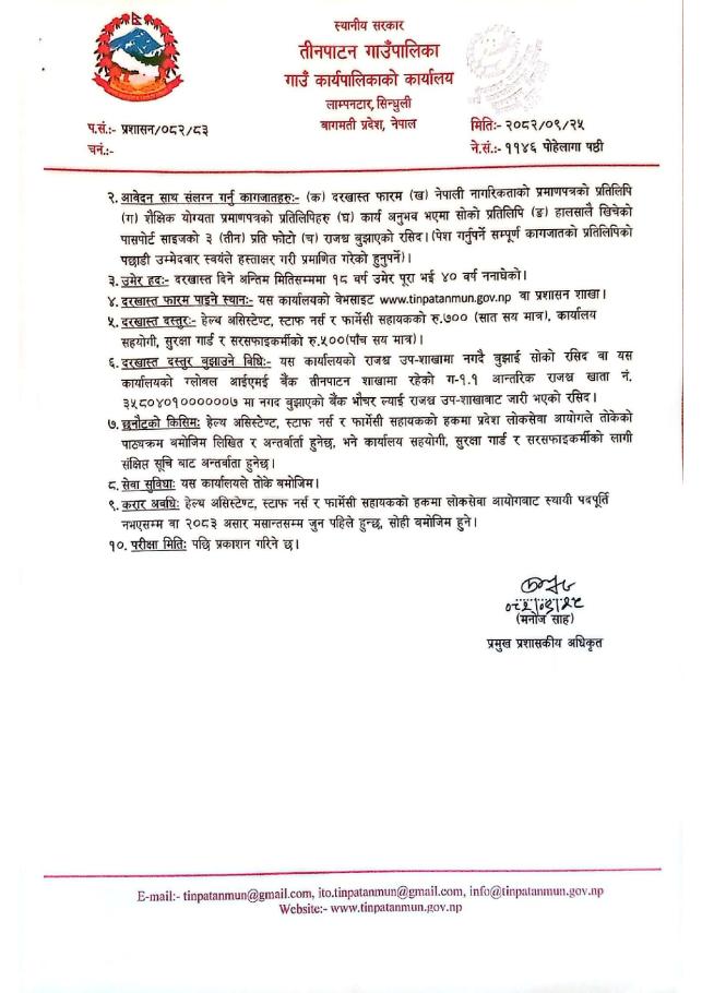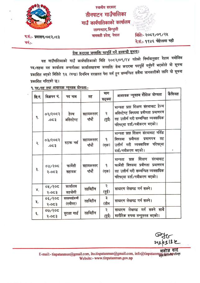 सेवा करारमा जनशक्ति पदपूर्ति गर्ने सम्बन्धी सूचना।