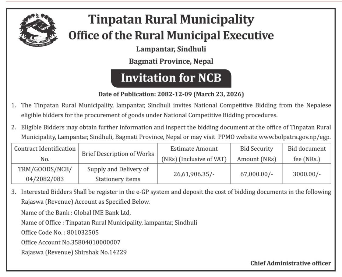 यस गाउँपालिकाको दैनिक प्रशासनिक लगायत विकास निर्माणका कामकाज बारे कुनै गुनासो, राय सल्लाह, सुझाव भए गाउँपालिकाका अध्यक्ष ज्यू, उपाध्यक्ष ज्यू र प्रमुख प्रशासकीय अधिकृतसँग वा हाम्रो फेसबुक पेजमा राख्नु हुन अनुरोध छ ।
