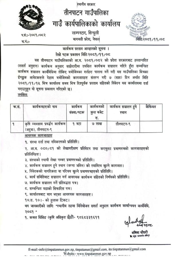 कार्यक्रम प्रस्ताव आह्वानको सूचना।