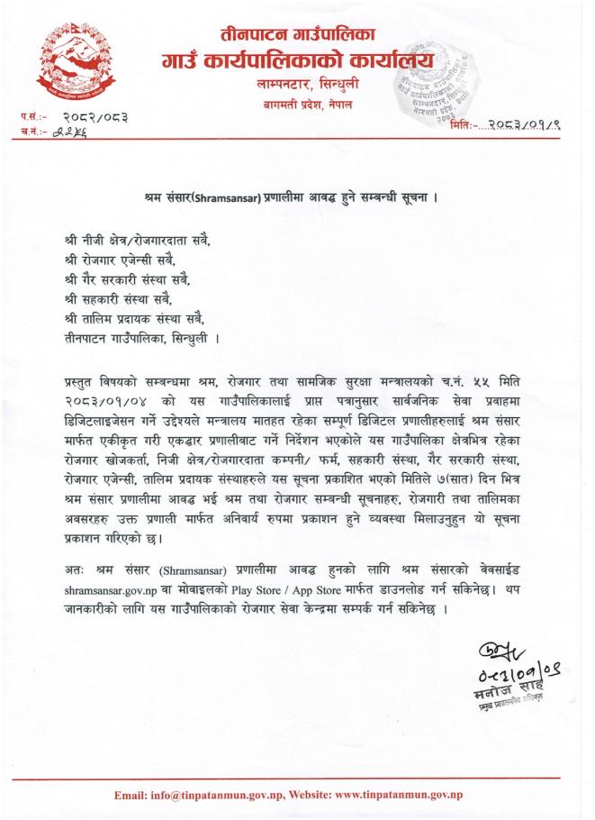 यस गाउँपालिकाको दैनिक प्रशासनिक लगायत विकास निर्माणका कामकाज बारे कुनै गुनासो, राय सल्लाह, सुझाव भए गाउँपालिकाका अध्यक्ष ज्यू, उपाध्यक्ष ज्यू र प्रमुख प्रशासकीय अधिकृतसँग वा हाम्रो फेसबुक पेजमा राख्नु हुन अनुरोध छ ।