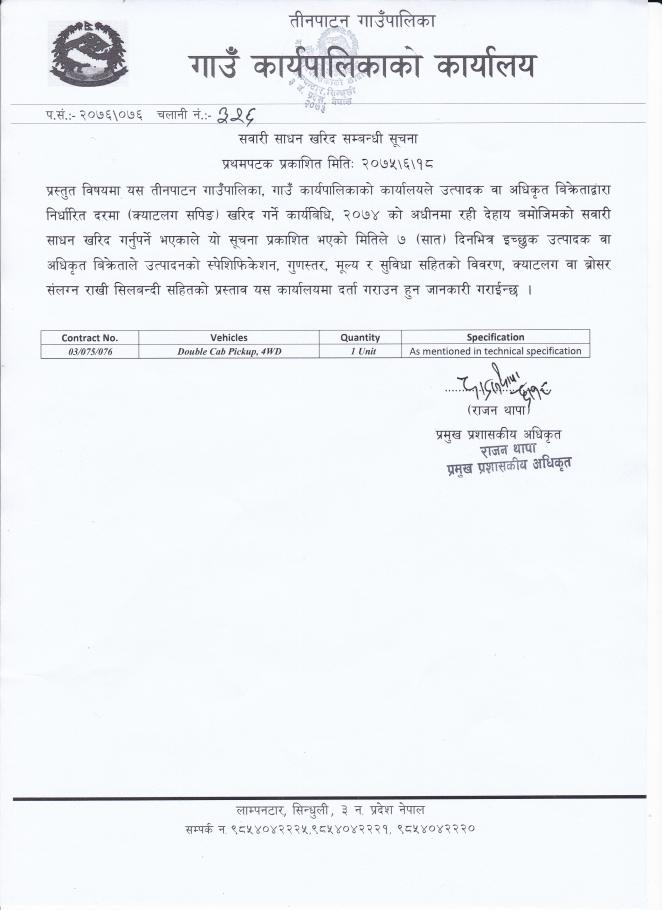 सवारी साधन खरिद सम्बन्धी सूचना