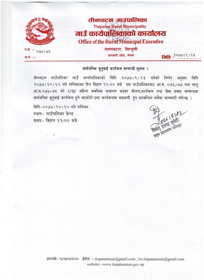 सार्वजनिक सुनुवाई सम्वन्धमा ।