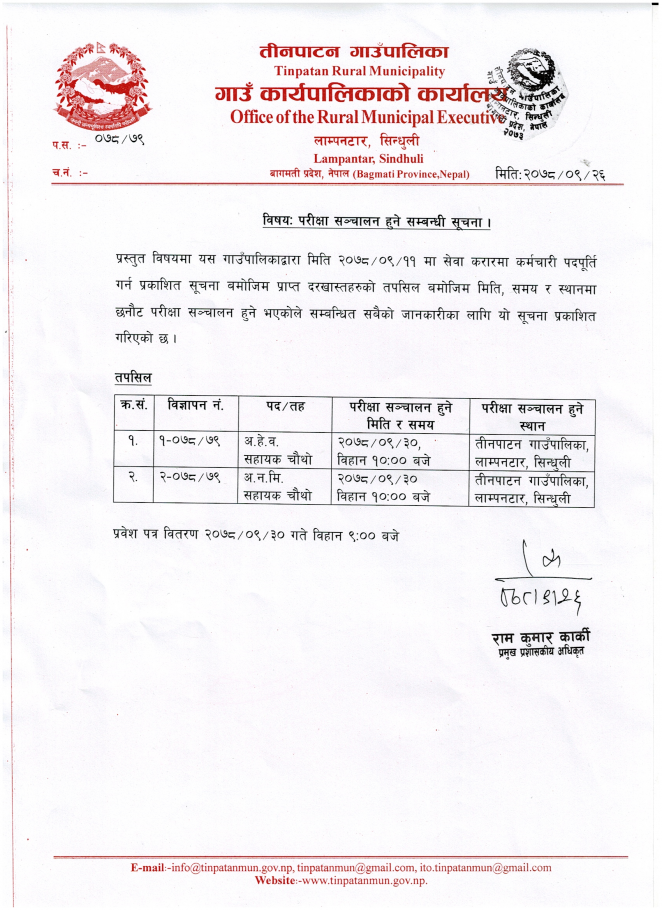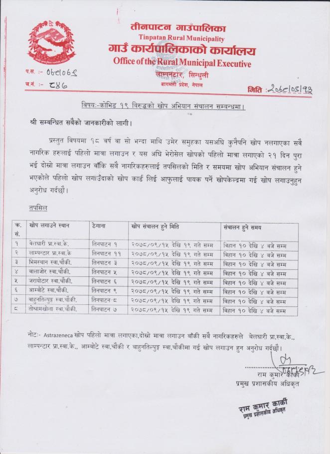 साविकमा डिभिजन सहकारी कार्यालय, सिन्धुली, जनकपुरधाममा दर्ता भएका हाल तीनपाटन गाउँपालिका भित्र रहेका सहकारीहरुको सूचिकृत गर्ने कार्य भई रहेकोले ७ दिन भित्र सूचिकृत गराउन हुन सम्वन्धित सबैमा अनुरोध छ ।